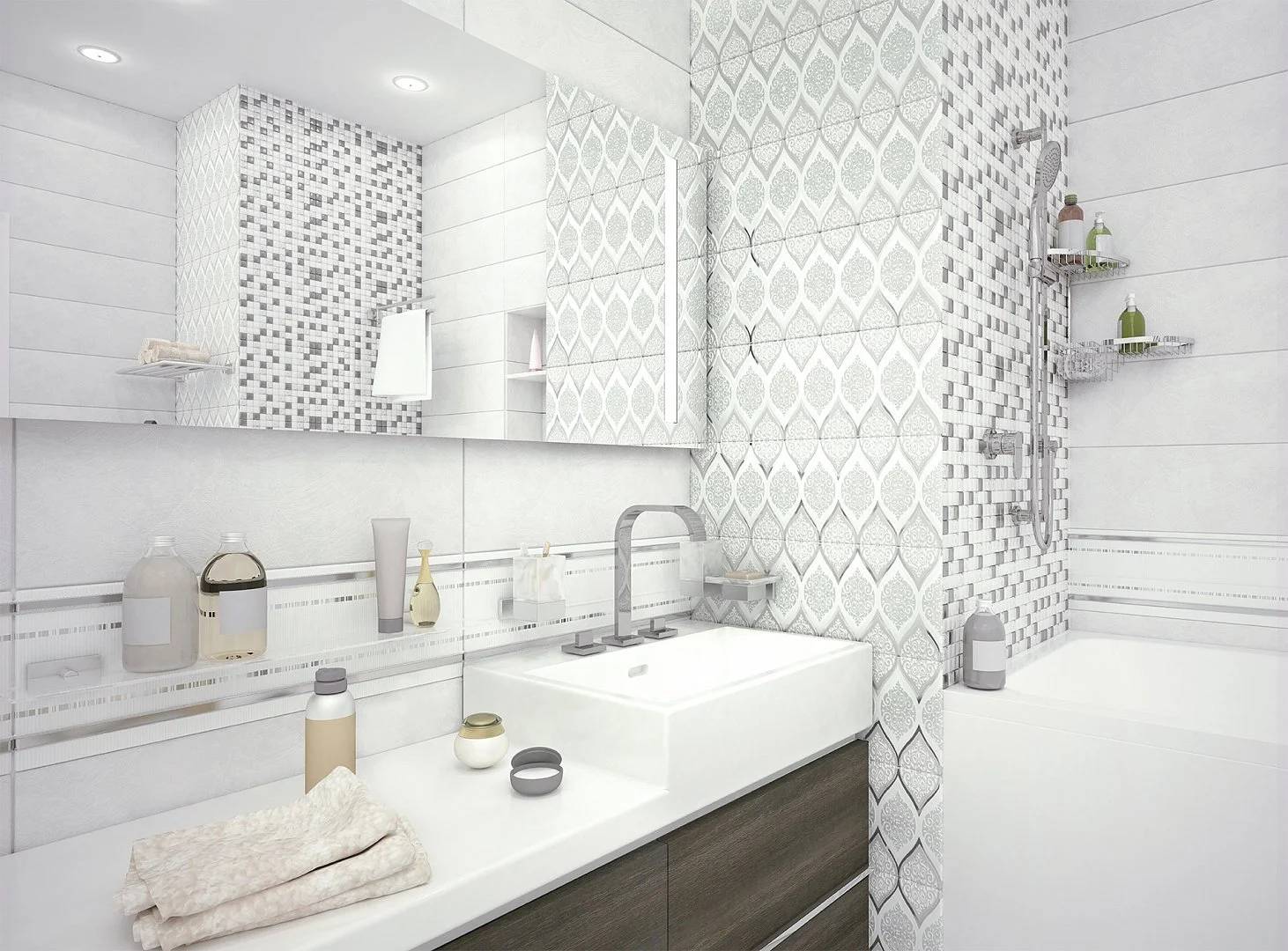 Индивидуальный 3D дизайн-проект — это единственный способ увидеть результат до покупки плитки и начала работ, а также избежать ошибок при подсчете необходимого количества плитки и при самой укладке.