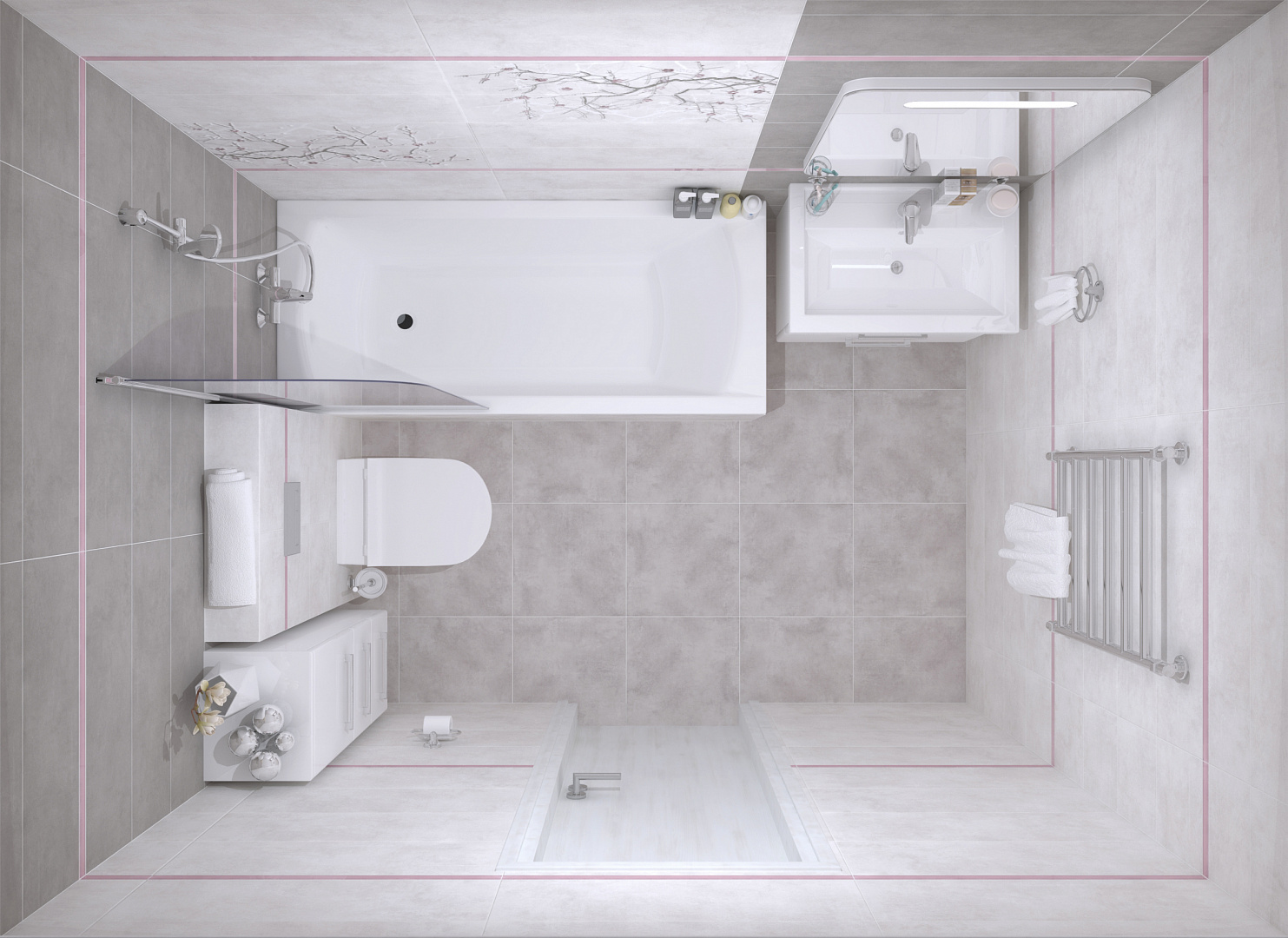 Индивидуальный 3D дизайн-проект — это единственный способ увидеть результат до покупки плитки и начала работ, а также избежать ошибок при подсчете необходимого количества плитки и при самой укладке.