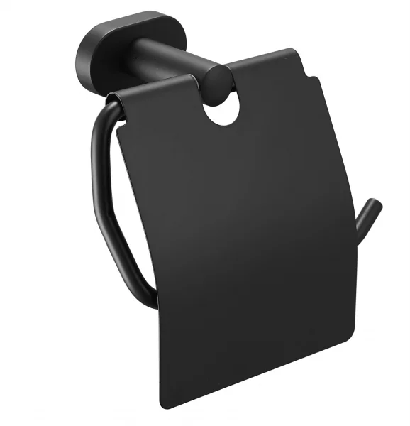 Держатель для туалетной бумаги с крышкой, нержавеющая сталь, цвет чёрный.