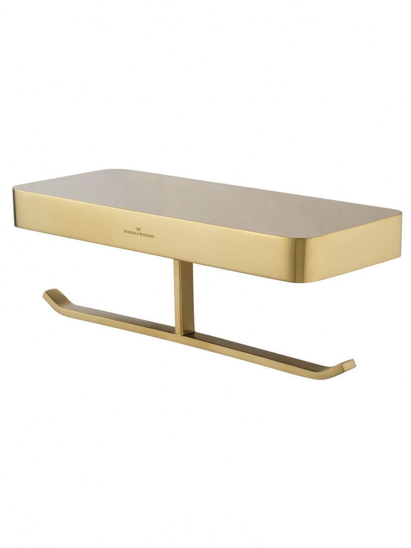Двойной держатель для туалетной бумаги с полкой WONZON & WOGHAND LOTTE, Брашированное золото (WW-8356-BG)
