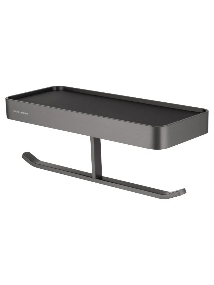 Двойной держатель для туалетной бумаги с полкой WONZON & WOGHAND LOTTE, Темный графит (WW-8356A-BGM) можно заказать в Севастополе, в Симферополе, в Ялте, в Евпатории и по всему Крыму.
