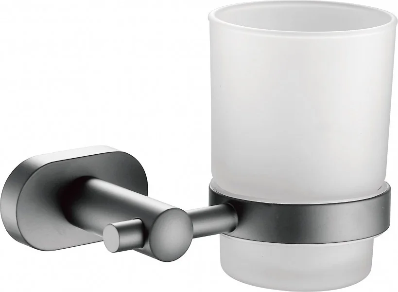 Стеклянный матовый стакан, для зубных щеток. Настенный держать, нержавеющая сталь, цвет серый.