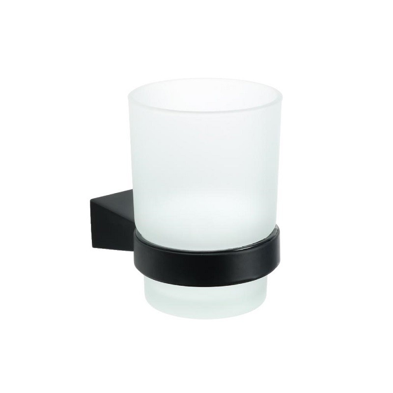 Стакан для зубных щеток Fixsen Trend, стекло, с настенным держателем, материал сталь, покрытие эмаль, цвет чёрный.