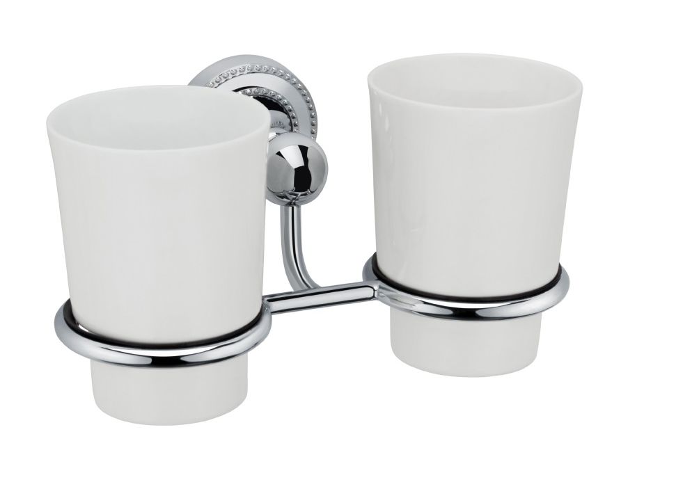 Стакан двойной Fixsen Style, керамика, с настенным держателем, материал латунь, цвет хром.