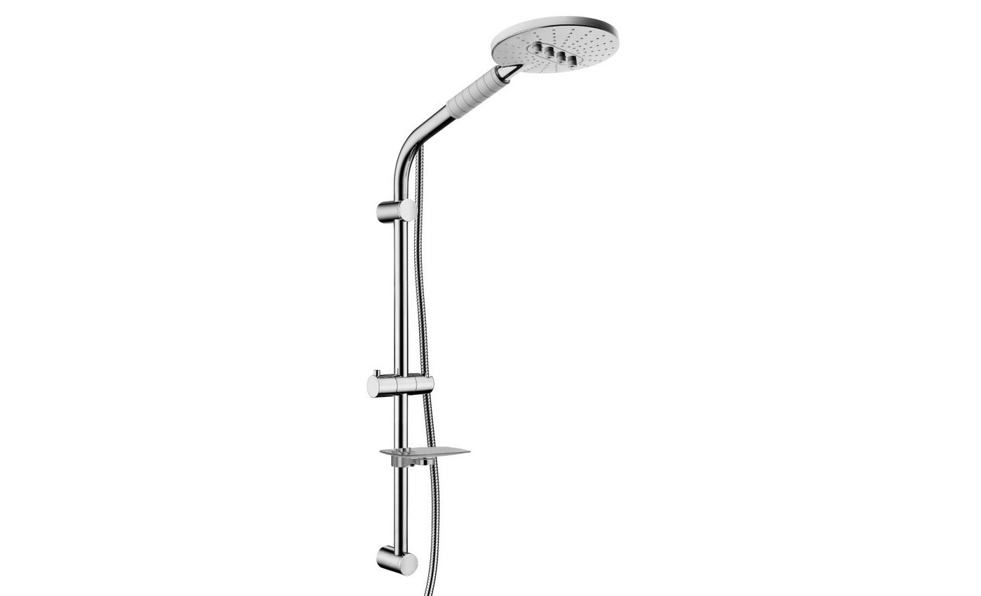 Комплектация: стойка для душа, регулируемое по высоте крепление для лейки, душевой шланг, мыльница