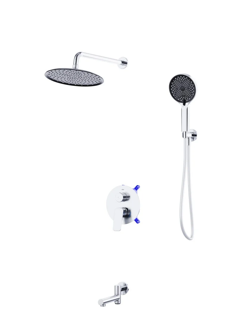MARINO Душевой комплект встраиваемый с изливом (смеситель встраиваемый, верхний душ, ручной душ со шлангом, штуцер с держателем), хром MARINO-VDSET-CRM