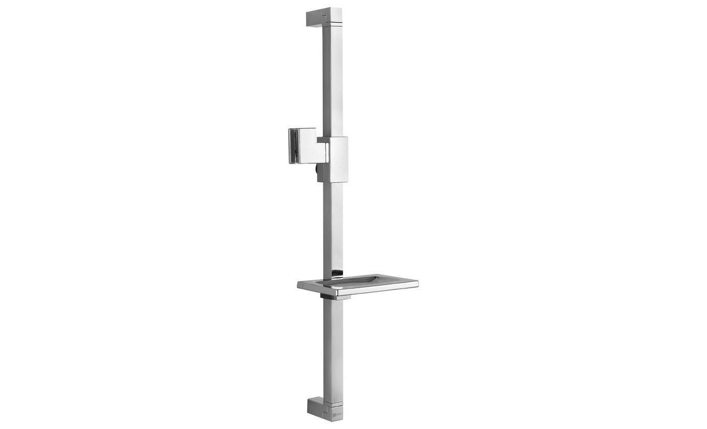 Комплектация: стойка для душа, регулируемое по высоте крепление для лейки, мыльница
