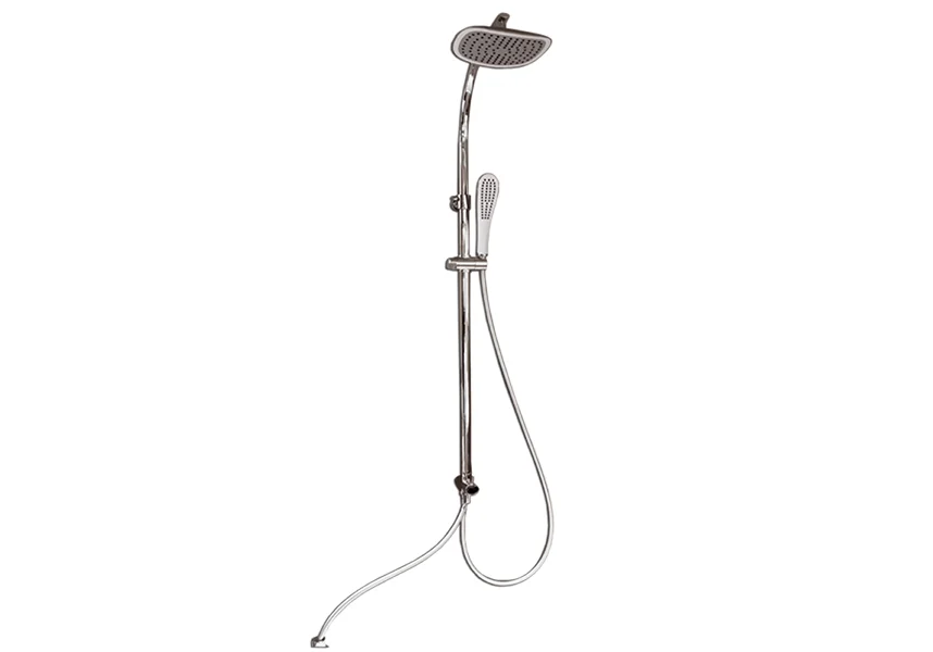 Душевая стойка включает в себя штангу, шланг, душевую лейку, лейку "Тропический дождь", переключатель душевая лейка/лейка "Тропический дождь". Крепление настенное.