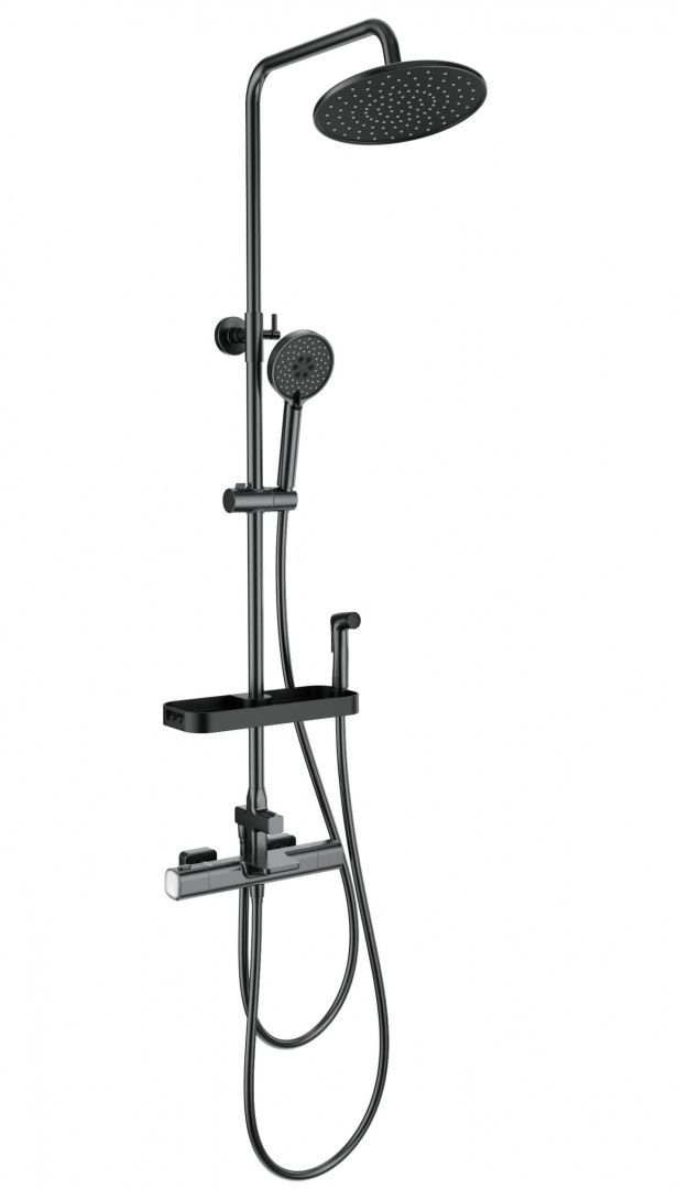 Душевая система с термостатом WONZON & WOGHAND Plate, Темный графит (WW-C3017-A1-BGG)