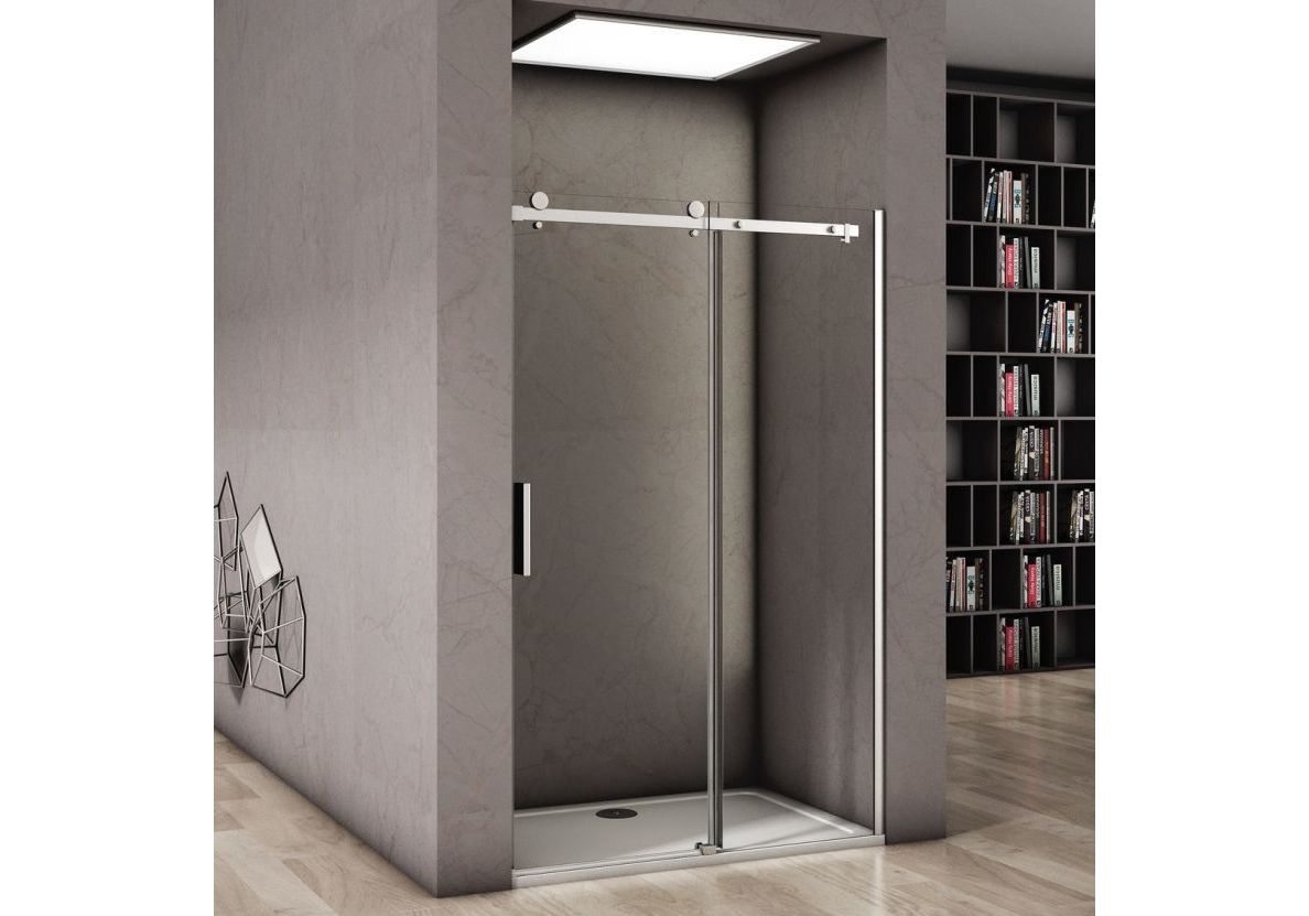 - выполнены из 8-ми миллиметрового закаленного, безопасного стекла с подвижной дверкой на опорных плавных бесшумных подшипниках,