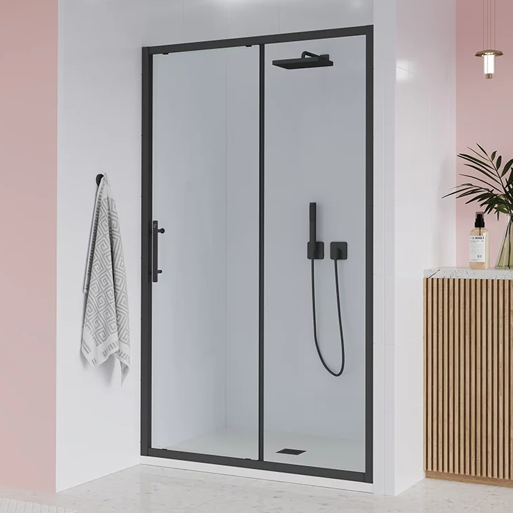 Veconi Душевая дверь Evo 110x195 см, черная матовая, прозрачное E1-B-110-01-C9 можно заказать в Севастополе, в Симферополе, в Ялте, в Евпатории и по всему Крыму.