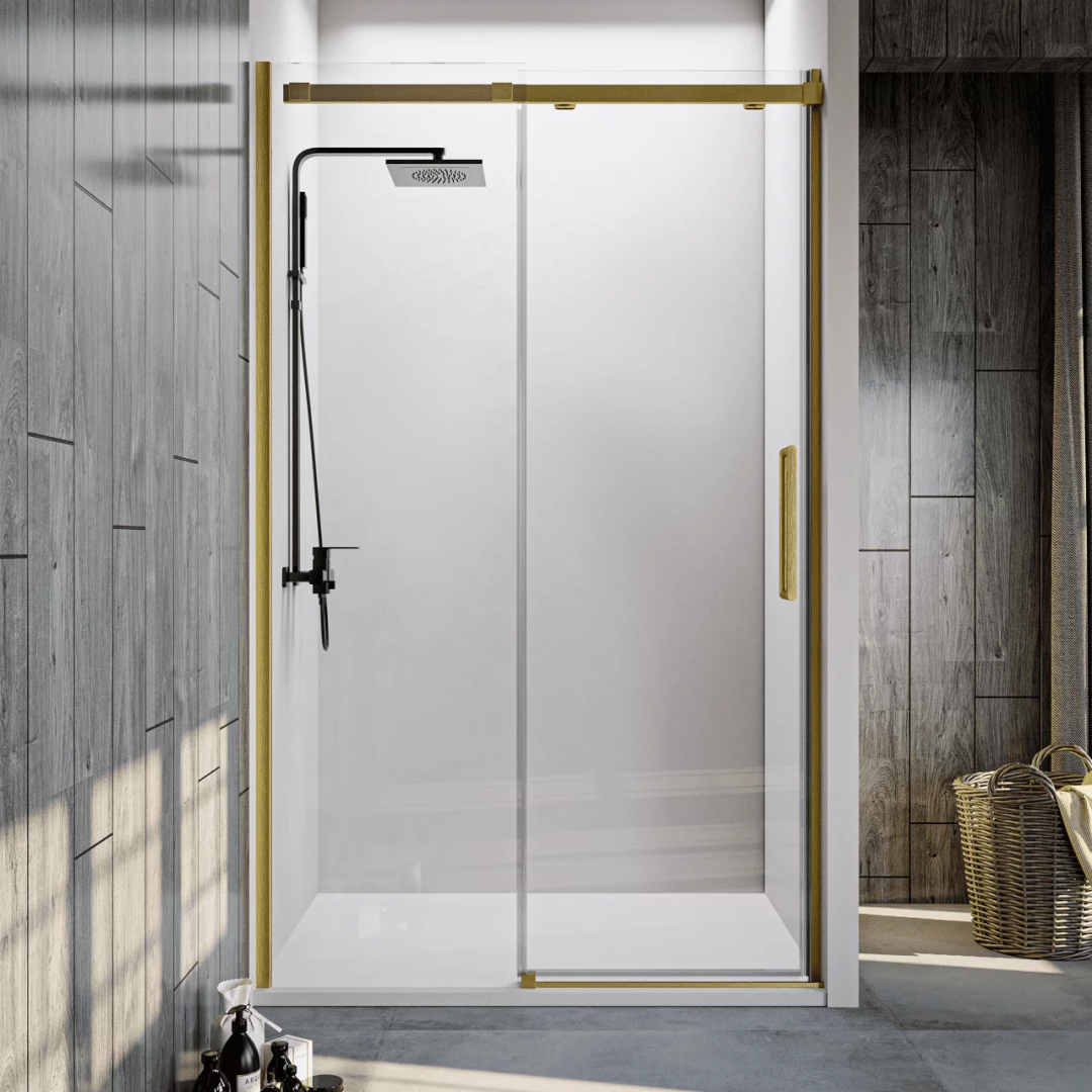 Veconi Душевая дверь Vianno VN-70G, 130x195 см, Брашированное золото, прозрачное VN70G-130-01-C4 можно заказать в Севастополе, в Симферополе, в Ялте, в Евпатории и по всему Крыму.