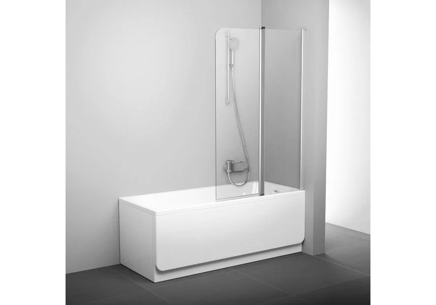 Шторка для ванны Ravak Chrome CVS2 100 см, расположение правостороннее. Профиль - сатин, витраж - Transparent. В комплектацию входит держатель.