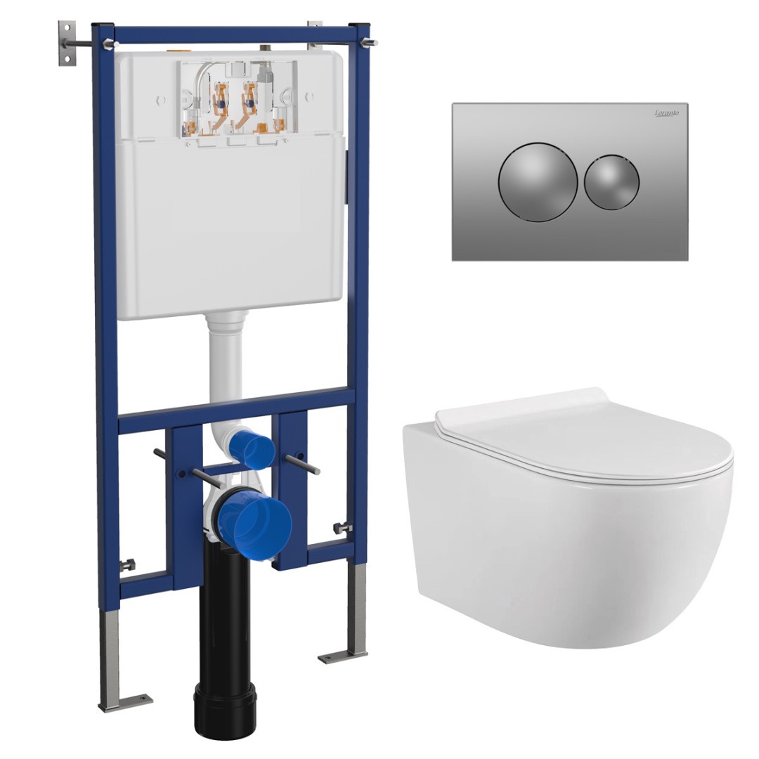 LORANTO Инсталляция с круглой кнопкой хром матовая + унитаз FATTO с сиденьем микролифт (4501+7311+CS-0017HM) можно заказать в Севастополе, в Симферополе, в Ялте, в Евпатории и по всему Крыму.