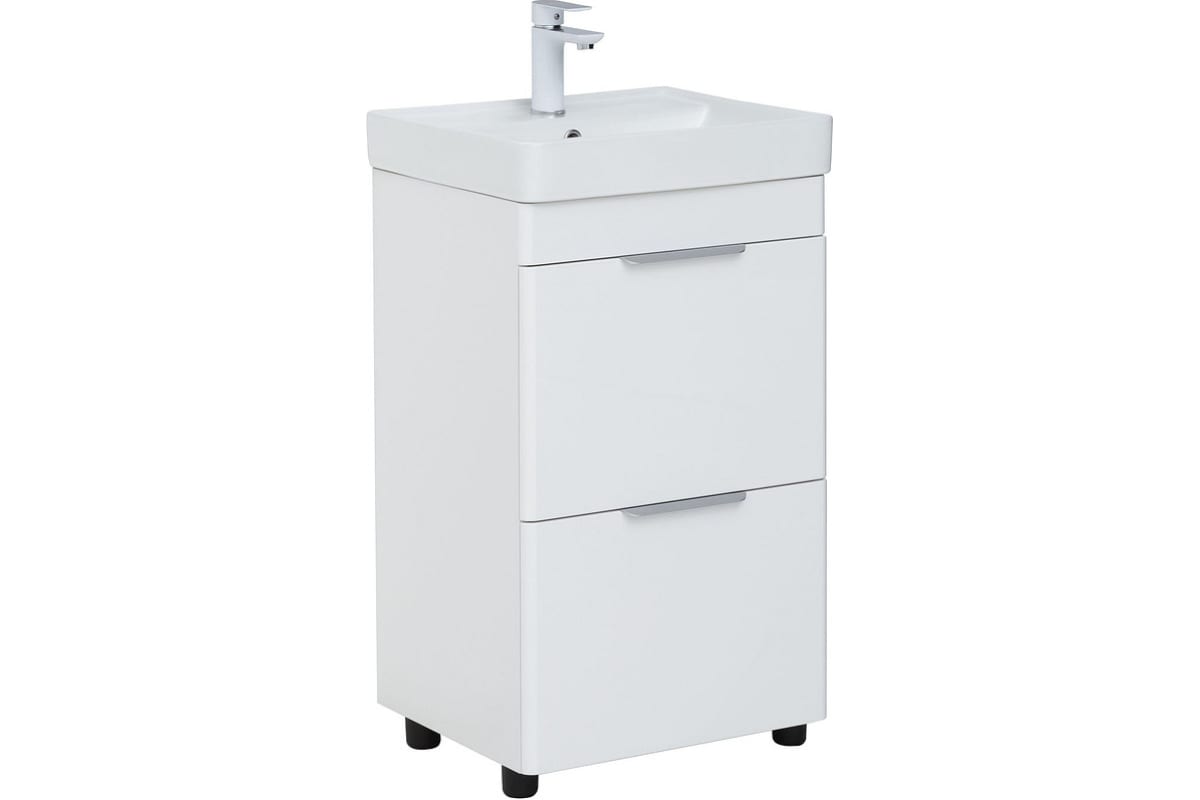 Приобрести aquanet тумба с раковиной ирис new 50 см, белая глянец (2 ящика, ножки)