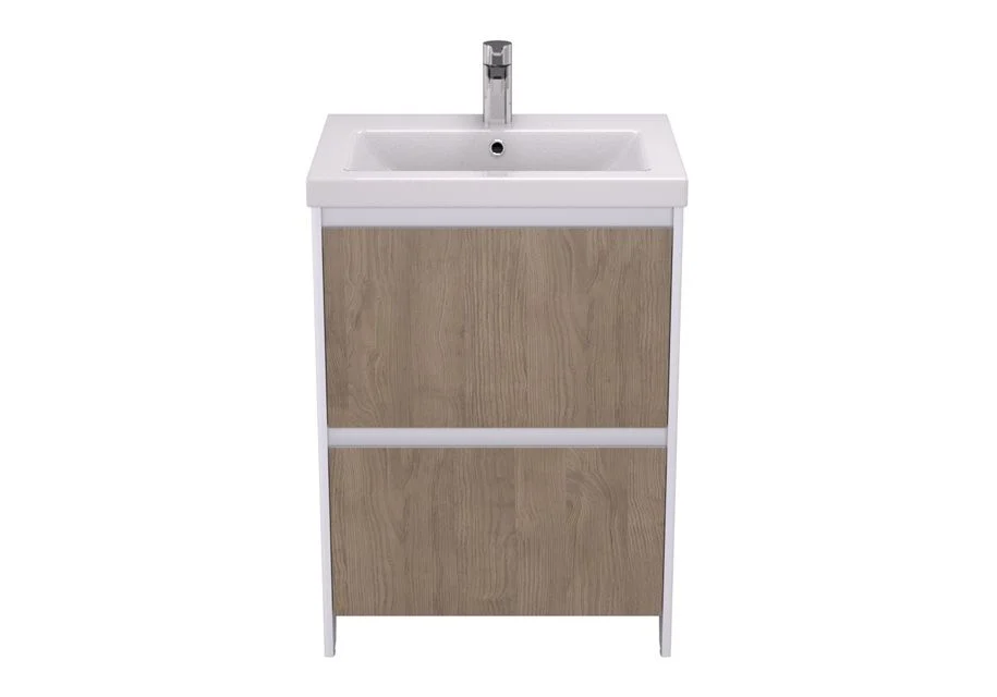 Тумба напольная Velvex Klaufs 60 см с раковиной Como 60-81. Система хранения: два выдвижных ящика, выдвижной органайзер. Цвет - белый глянец/дерево (шатанэ). Возможна комплектация тумбы со столешницей.