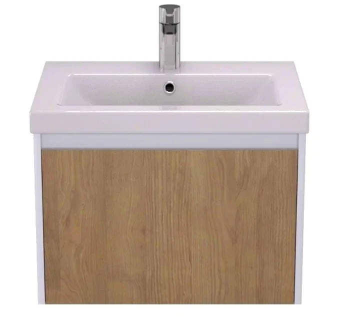 Тумба имеет стильный и минималистичный дизайн, который позволяет легко сочетаться с другими элементами и предметами интерьера. Этот комплект доступен в белом и деревянном цвете, что позволяет выбрать наиболее подходящий вариант для вашей ванной комнаты.
