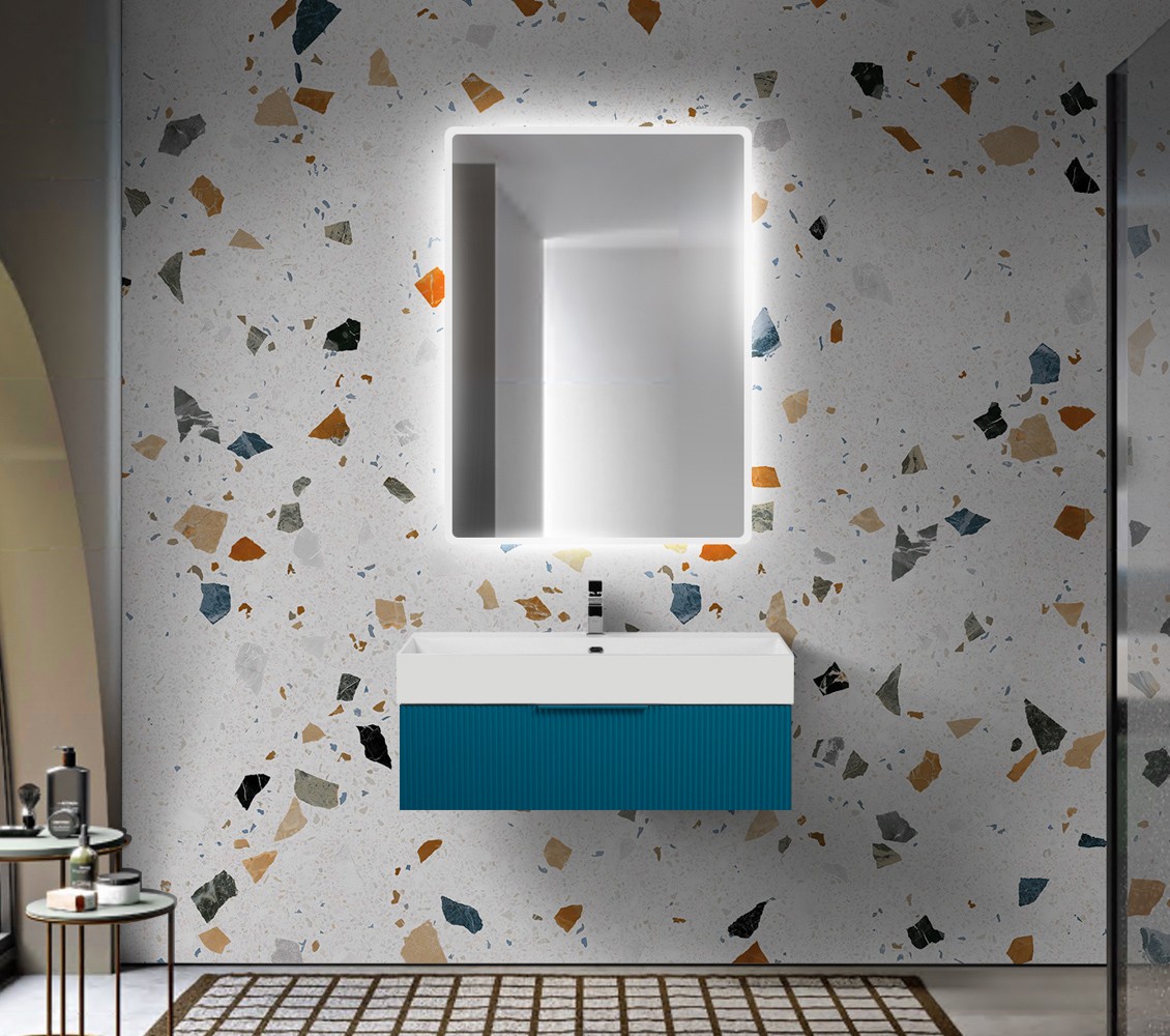 Cezares Тумба подвесная с раковиной PREMIUM 90 см Plisse Blu petrolio, голубая 44423