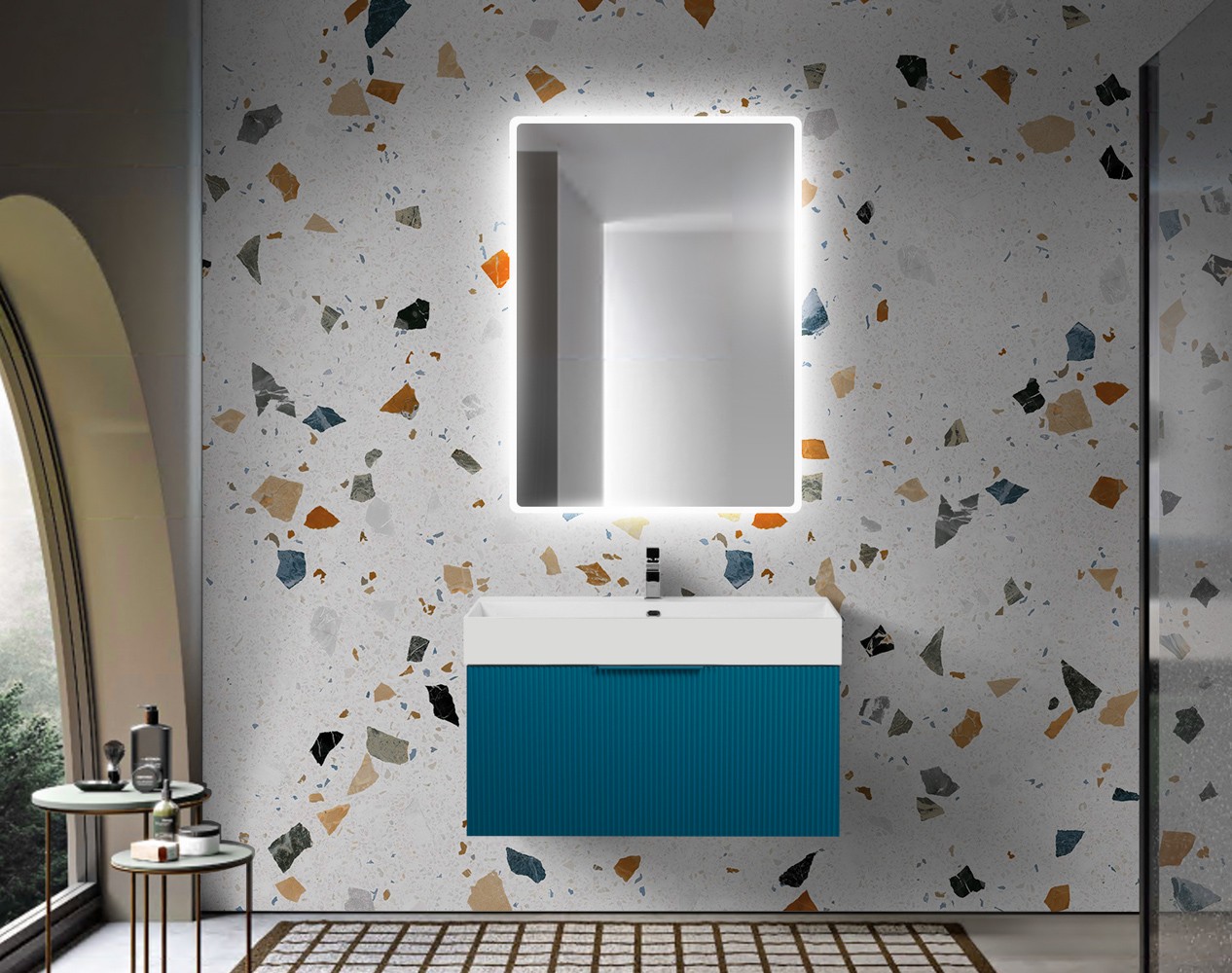 Cezares Тумба подвесная с раковиной PREMIUM 90 см Plisse Blu petrolio, голубая 55443 можно заказать в Севастополе, в Симферополе, в Ялте, в Евпатории и по всему Крыму.