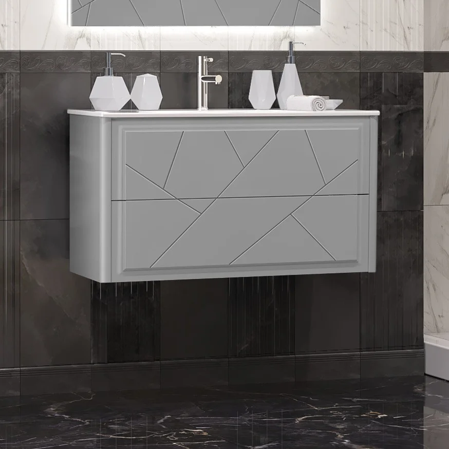 Opadiris Тумба подвесная с раковиной Луиджи 90 см, серая матовая можно заказать в Севастополе, в Симферополе, в Ялте, в Евпатории и по всему Крыму.