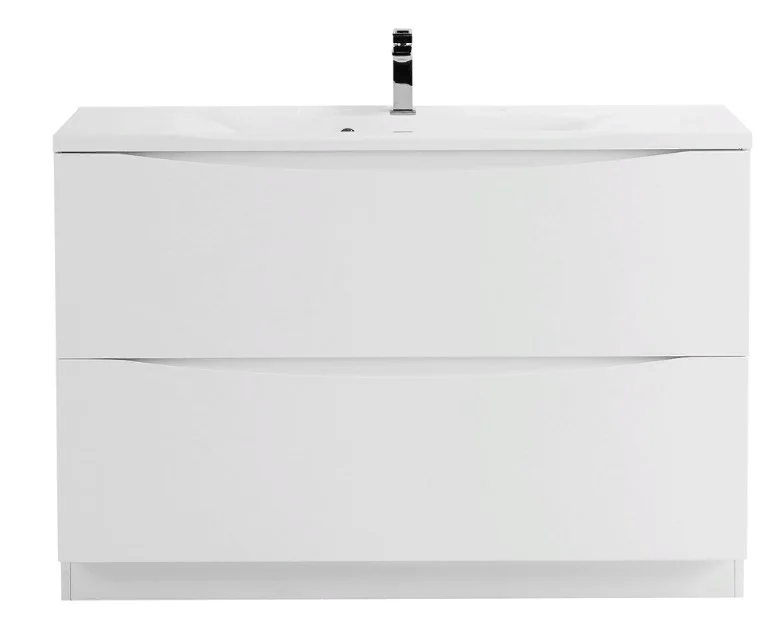 Тумба имеет два ящика с механизмом плавного закрывания, которые обеспечивают дополнительное пространство для хранения полотенец, косметики и других необходимых вещей. Это позволяет убрать все необходимое за дверцы, что сохранит порядок и создаст благоприятную атмосферу в ванной комнате.