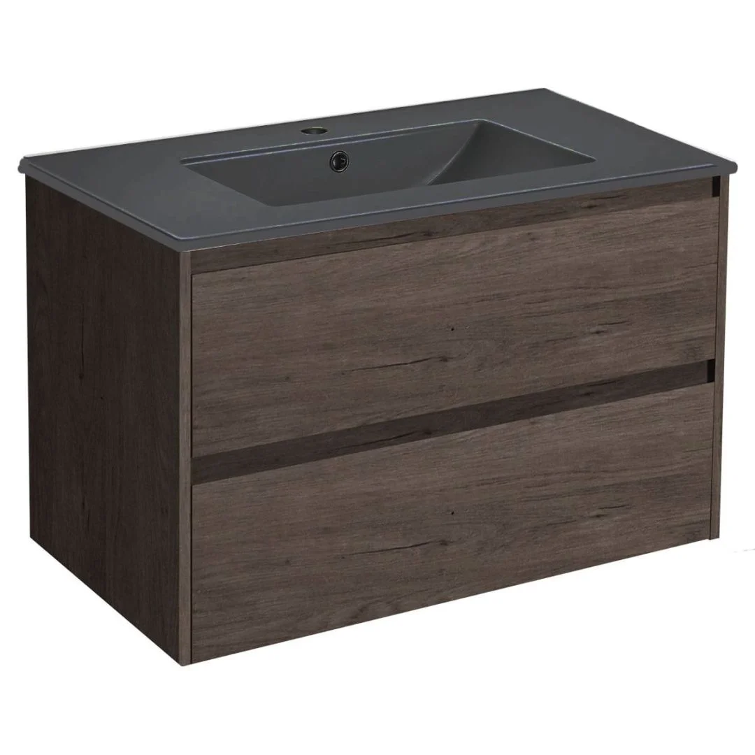 Vincea Тумба подвесная Gio 80 см, дуб темный с раковиной антрацит матовый VMC-2G800RO;VBS-13980MA