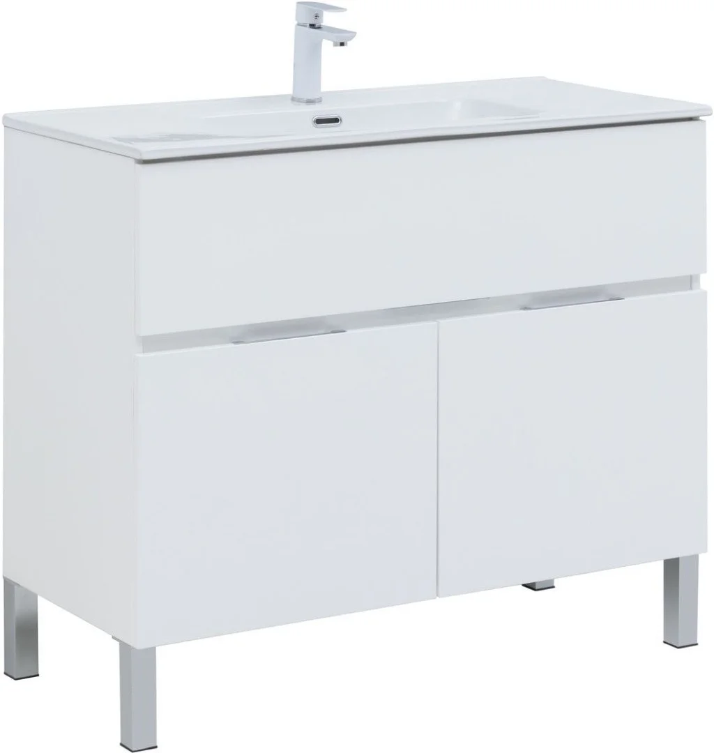 Aquanet Тумба с раковиной Алвита New 100 см, 1 ящик, 2 дверцы, белая матовая можно заказать в Севастополе, в Симферополе, в Ялте, в Евпатории и по всему Крыму.