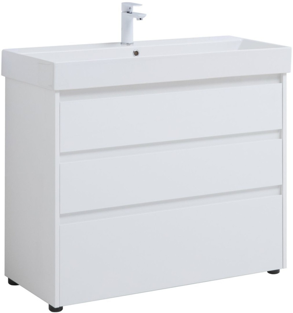 Aquanet Тумба с раковиной Nova Lite 100 см, белая глянец (3 ящика)