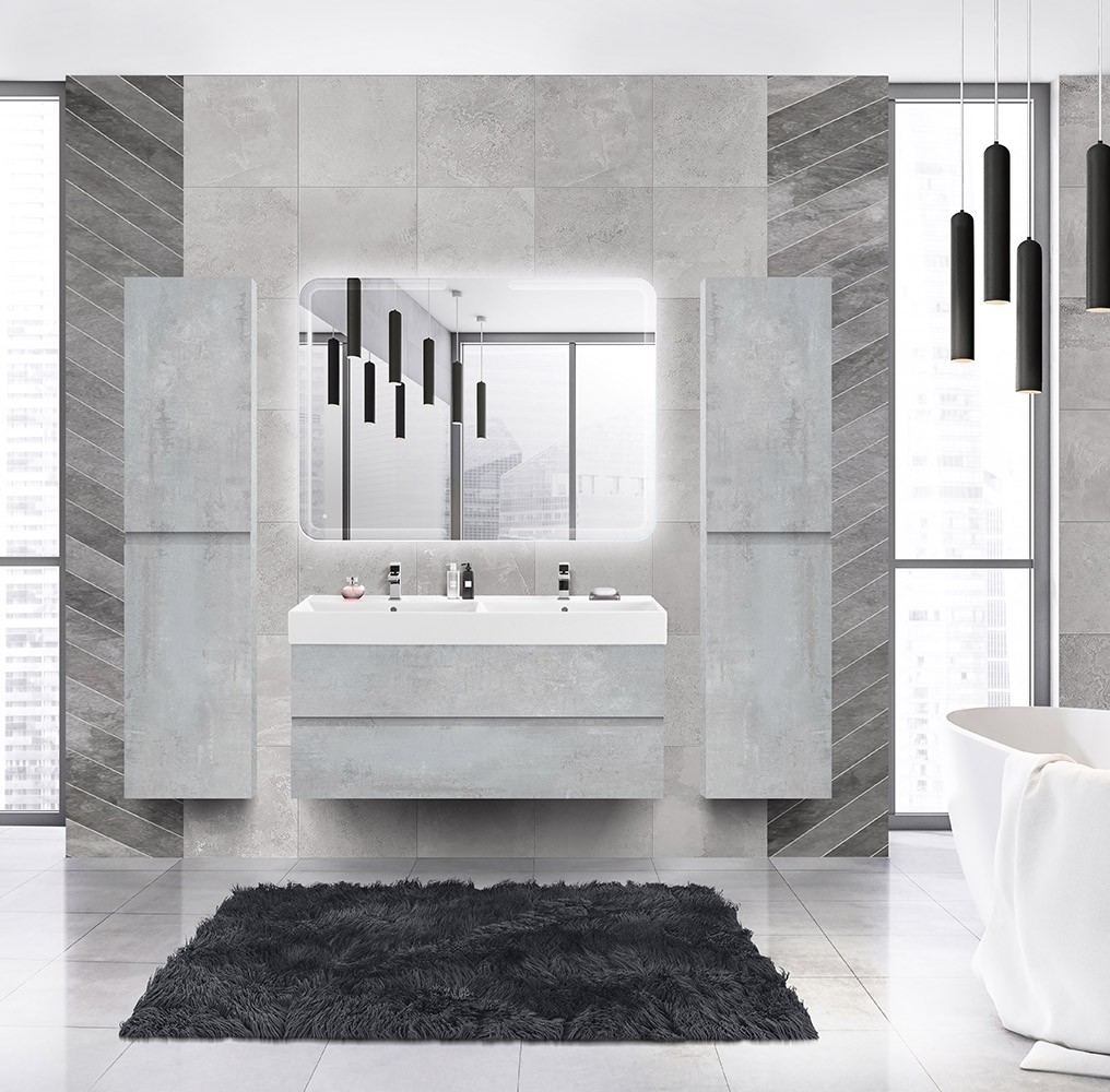 Cezares Тумба подвесная с раковиной MOLVENO 46 120 см Beton, бетон MOLVENO 46-120-2C-SO-2-BET можно заказать в Севастополе, в Симферополе, в Ялте, в Евпатории и по всему Крыму.
