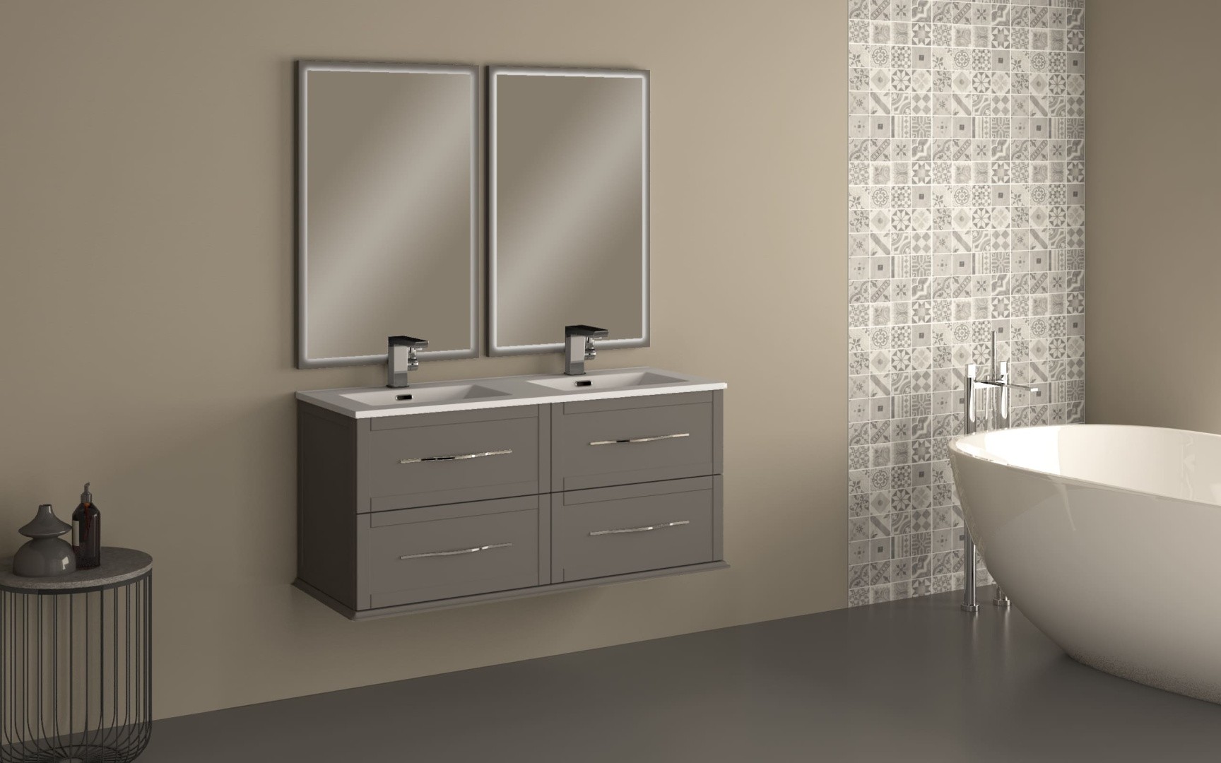 Cezares Тумба подвесная с раковиной на две чаши TIFFANY 120 см Grigio Nuvola, серая 55244
