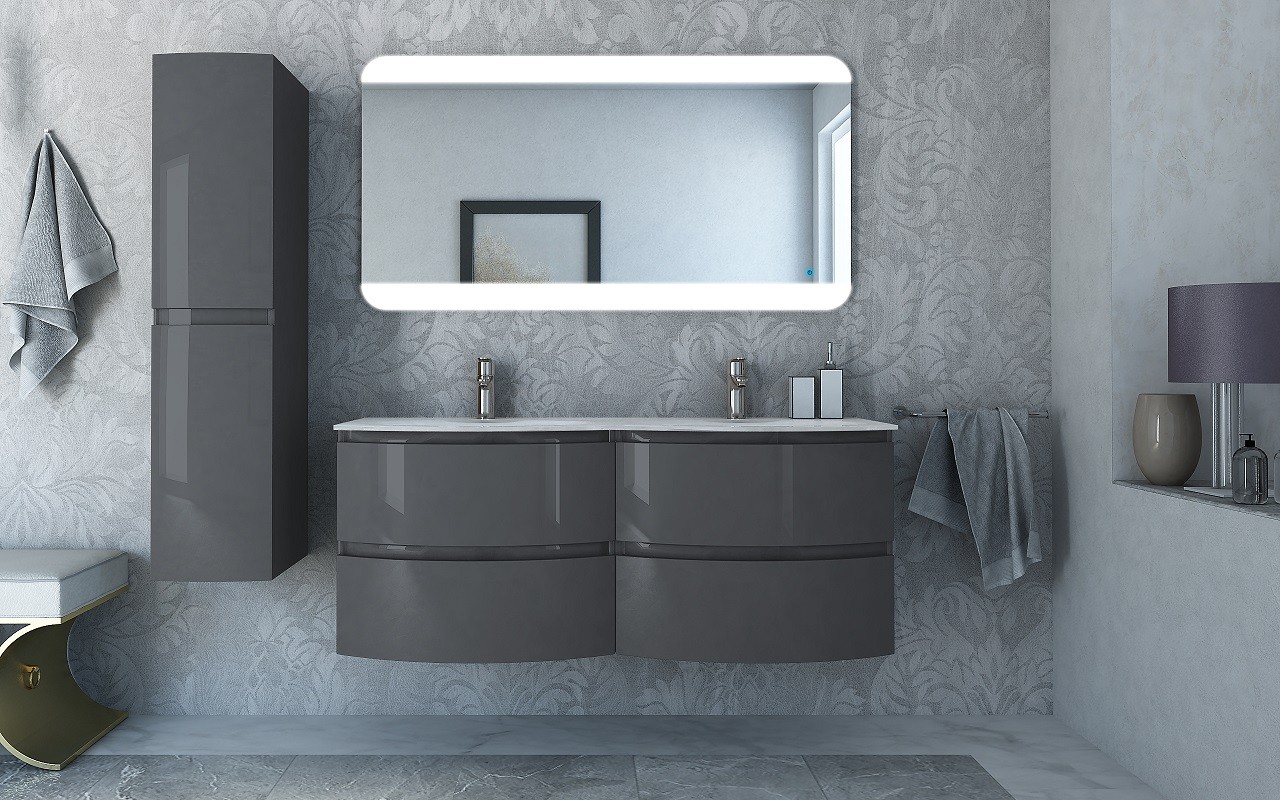 Cezares Тумба подвесная с раковиной на две чаши VAGUE 138 см Antracite, антрацит 44221 можно заказать в Севастополе, в Симферополе, в Ялте, в Евпатории и по всему Крыму.