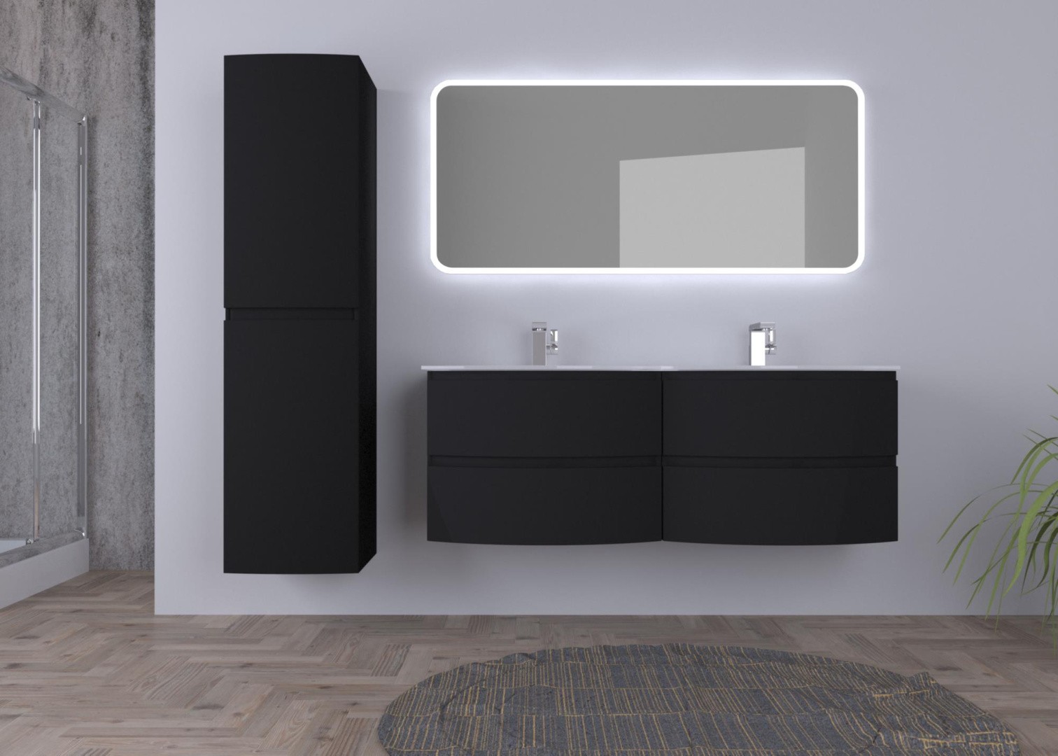 Cezares Тумба подвесная с раковиной на две чаши VAGUE 138 см Nero Opaco, черная 55282 можно заказать в Севастополе, в Симферополе, в Ялте, в Евпатории и по всему Крыму.