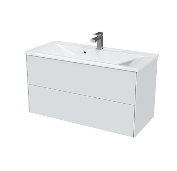 Mirsant Тумба SOLE ULTRA , подвесная с раковиной PREMIER 100 см, белый глянец УТ000068486