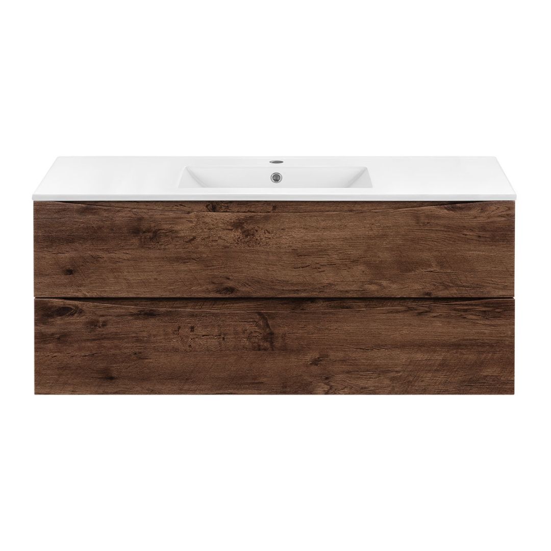 Vincea Тумба подвесная Mia 120 см, темное дерево с белой раковиной VMC-2MC120RW;VBS-13120 можно заказать в Севастополе, в Симферополе, в Ялте, в Евпатории и по всему Крыму.