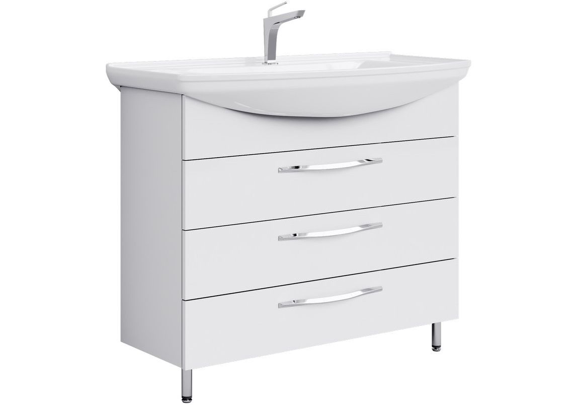 Тумба напольная Aqwella Аллегро 105 см с раковиной Стиль 105, 3 ящика, цвет белый.