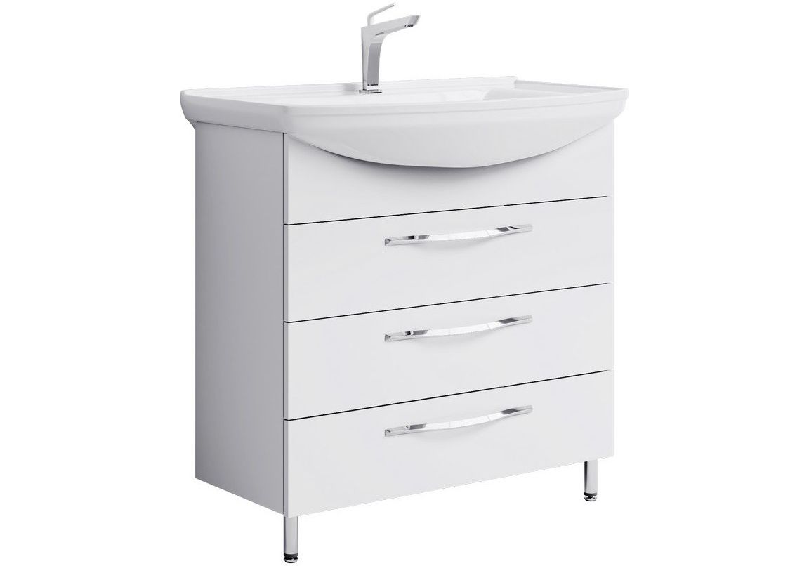 Тумба напольная Aqwella Аллегро 75 см с раковиной Стиль 75, 3 ящика, цвет белый.