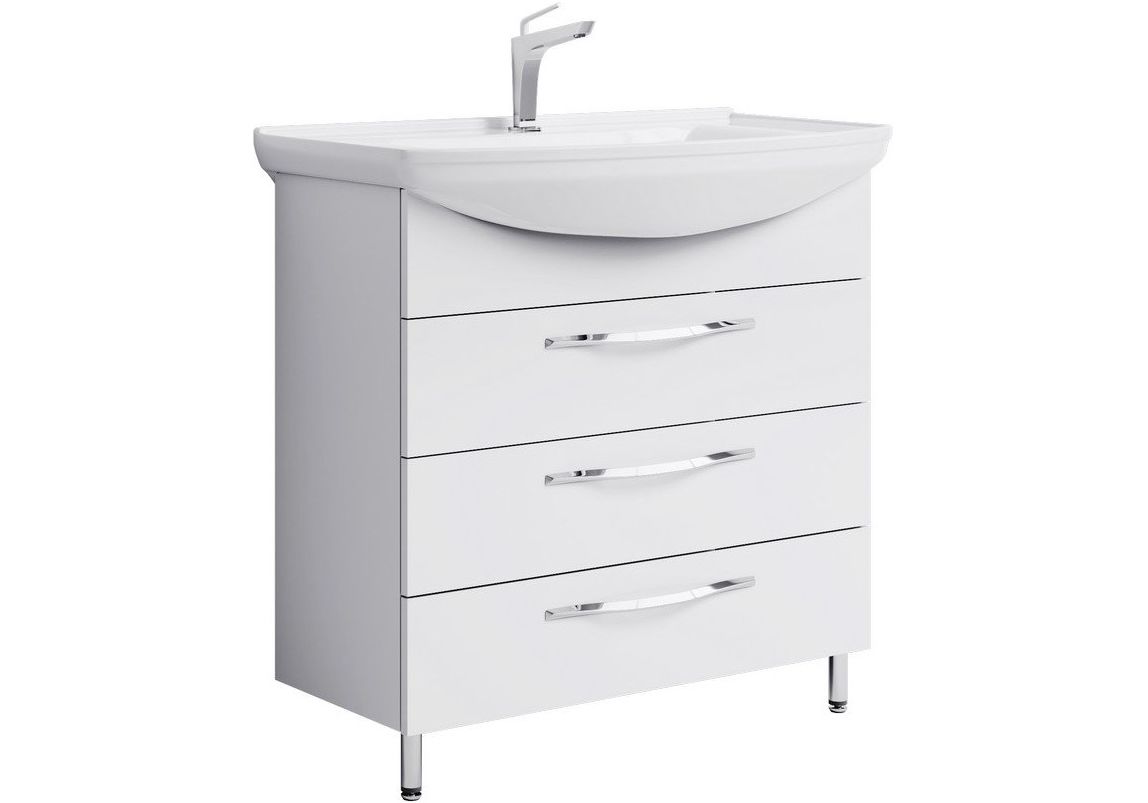 Тумба напольная Aqwella Аллегро 85 см с раковиной Стиль 85, 3 ящика, цвет белый.
