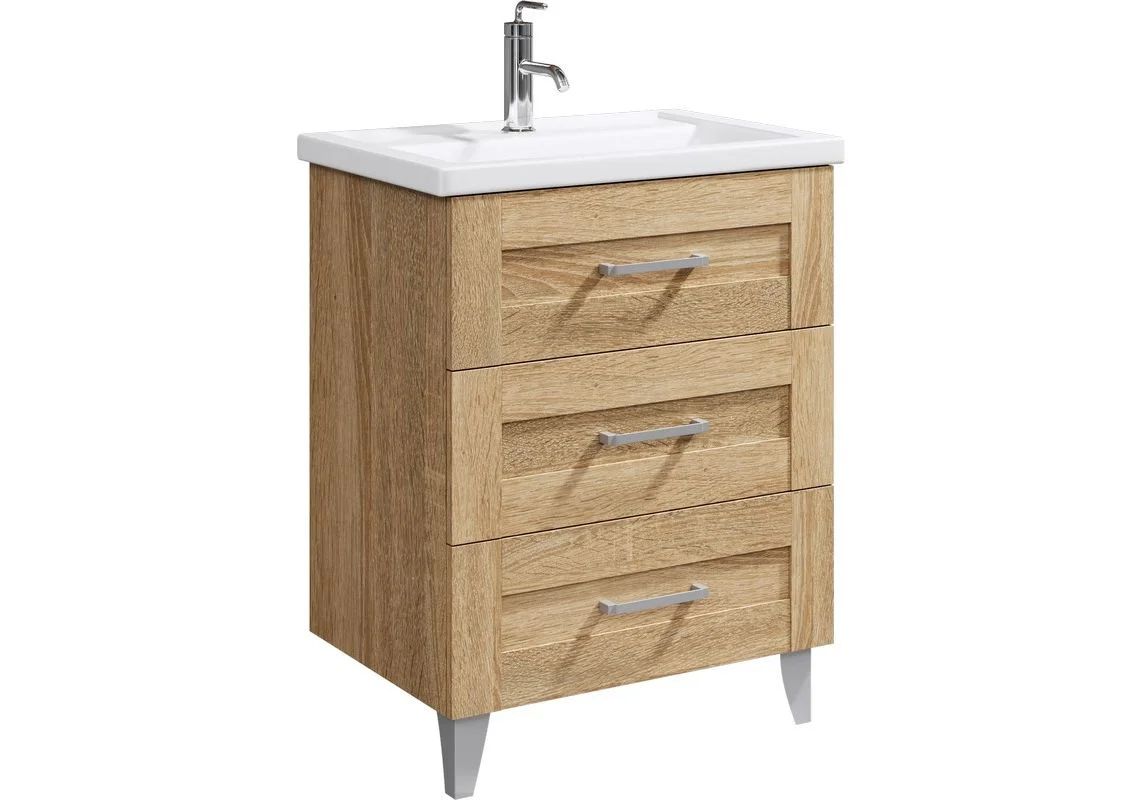 Тумба напольная Aqwella Фостер 70 см с раковиной Фостер 70 см, с тремя ящиками, цвет дуб сонома.