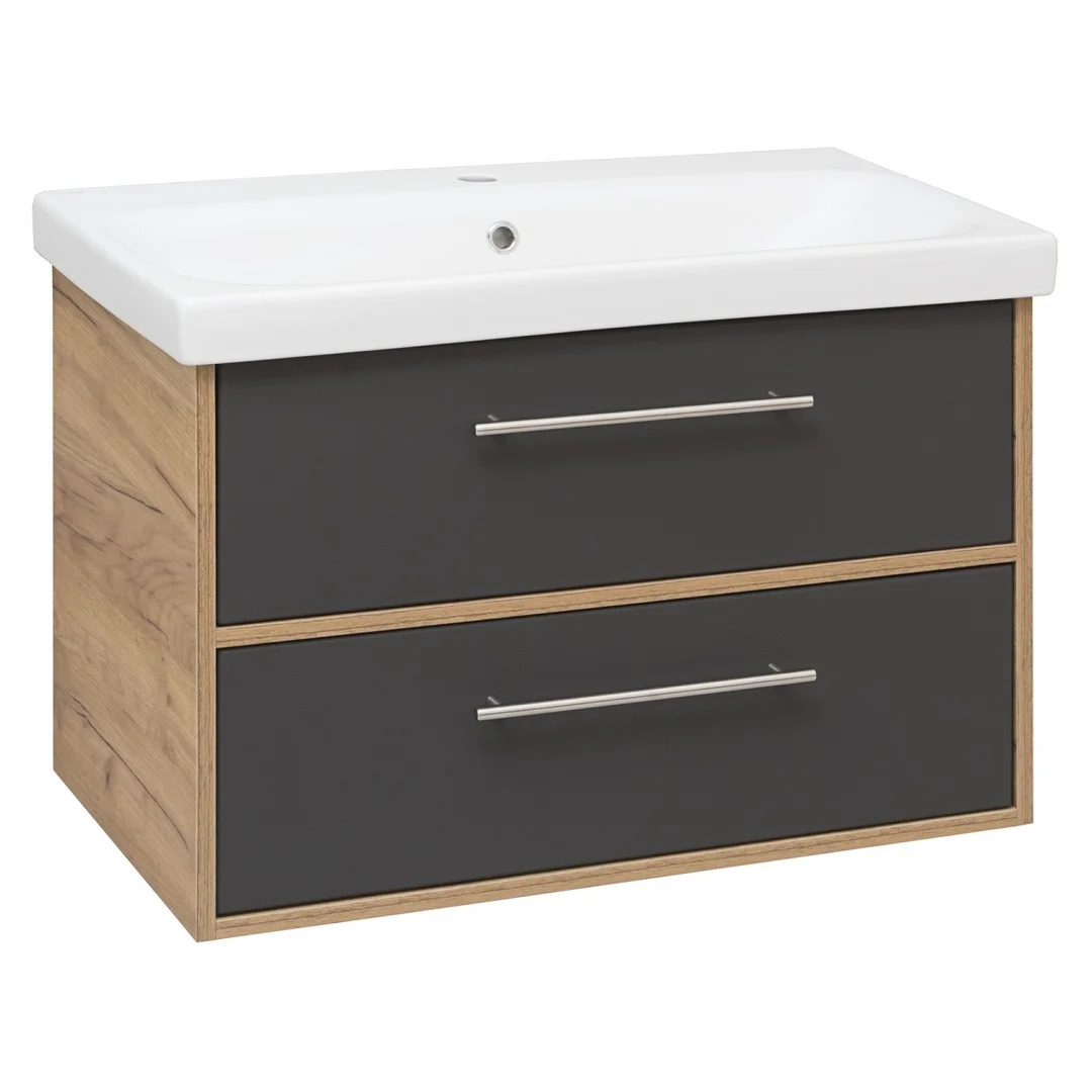 Тумба подвесная с раковиной Aqua De Marco Melbourne 80 см – это идеальный выбор для современной ванной комнаты. Она имеет элегантный дизайн и удобный размер 80 см, которые идеально подходят для использования в ванной комнате малого или среднего размера.