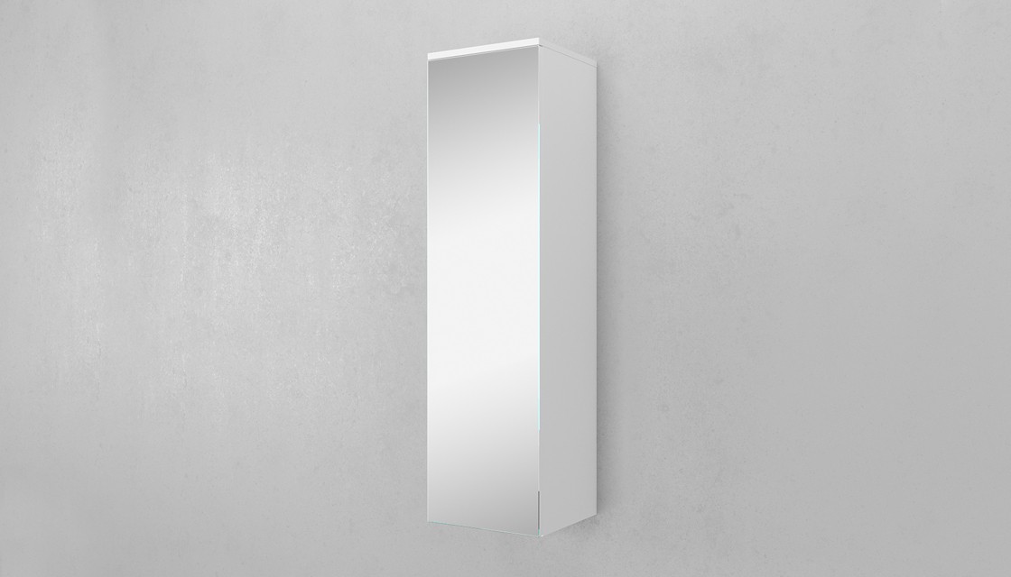 Пенал подвесной Velvex Unique Unit 120 см, две стеклянные полки за распашной дверцей, европейская фурнитура. Цвет белый матовый.