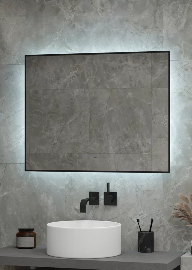 Continent Зеркало с подсветкой Amer 80х70 см, черное можно заказать в Севастополе, в Симферополе, в Ялте, в Евпатории и по всему Крыму.