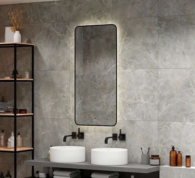 Continent Зеркало с подсветкой Torry 60х120 см, бесконтактный включатель, черное можно заказать в Севастополе, в Симферополе, в Ялте, в Евпатории и по всему Крыму.