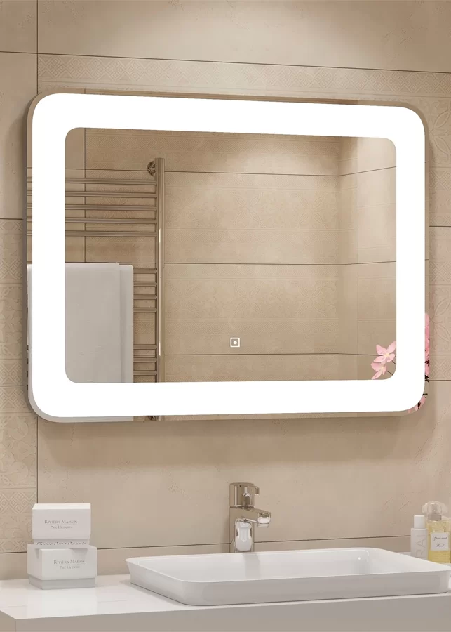 Continent Зеркало с подсветкой Velvette 90х70 см, белое можно заказать в Севастополе, в Симферополе, в Ялте, в Евпатории и по всему Крыму.