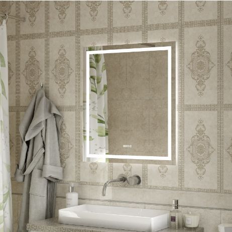 Continent Зеркало с подсветкой Verte 80х90 см, бесконтактный включатель, часы, белое можно заказать в Севастополе, в Симферополе, в Ялте, в Евпатории и по всему Крыму.