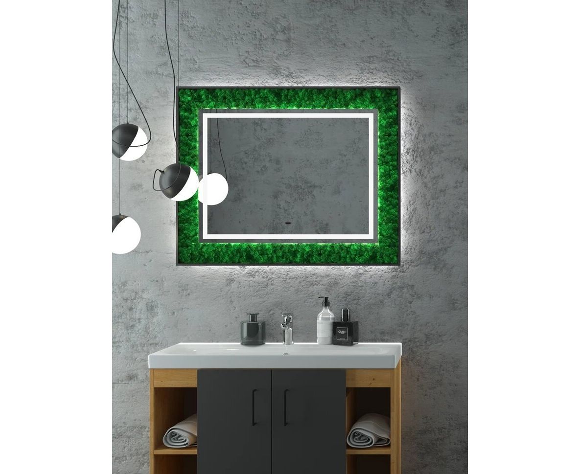 Continent Зеркало с подсветкой Forest 100х80 см, бесконтактный включатель, зеленое можно заказать в Севастополе, в Симферополе, в Ялте, в Евпатории и по всему Крыму.