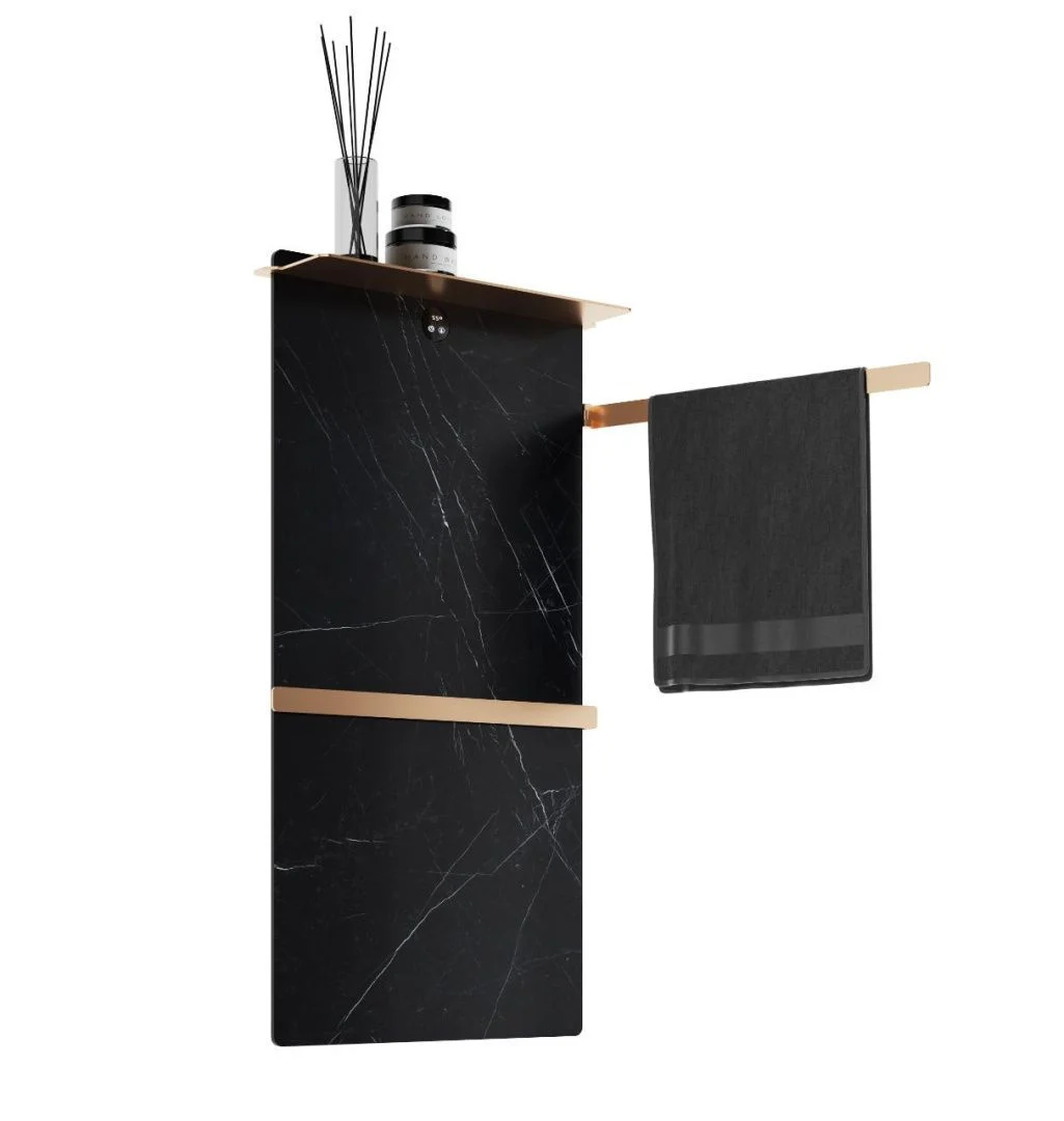 Полотенцесушитель электрический с каменной плитой Черный мрамор WONZON & WOGHAND STUTTGART, Брашированное золото (WW-A504-BG) можно заказать в Севастополе, в Симферополе, в Ялте, в Евпатории и по всему Крыму.