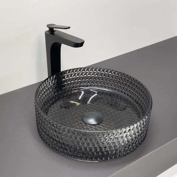 Comforty Раковина накладная CF21004 36х36 см, стеклянная серый дым можно заказать в Севастополе, в Симферополе, в Ялте, в Евпатории и по всему Крыму.