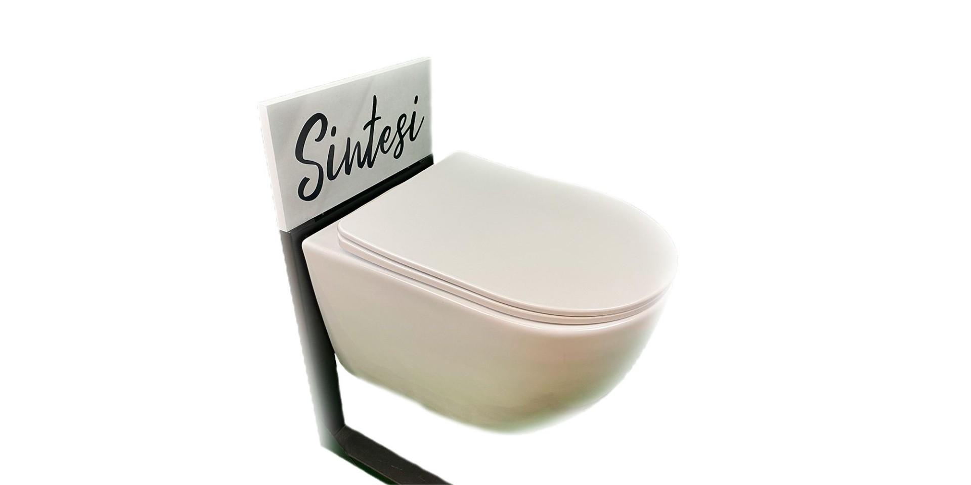 Sintesi Подвесной безободковый унитаз EVI Tornado с крышкой-сиденьем дюропласт, микролифт можно заказать в Севастополе, в Симферополе, в Ялте, в Евпатории и по всему Крыму.
