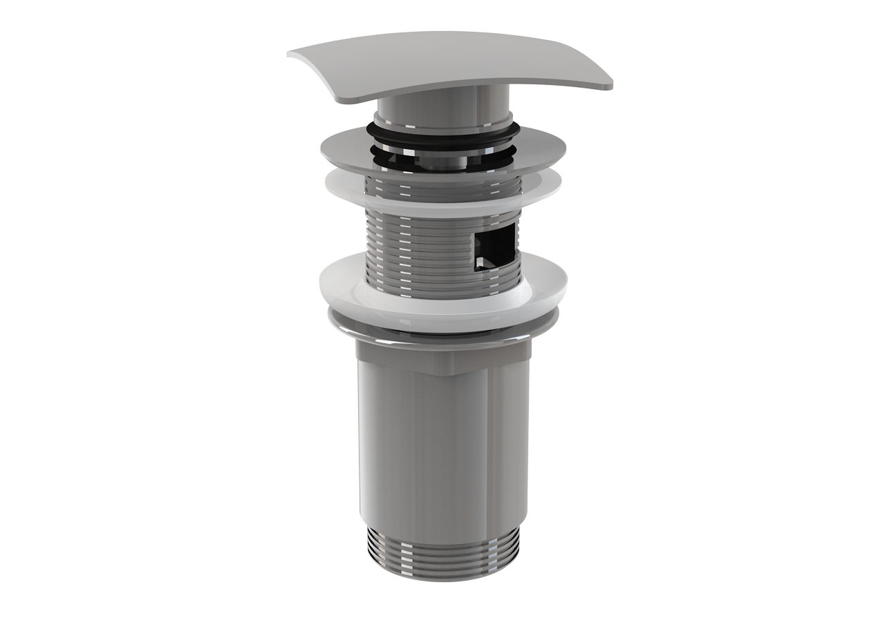 Донный клапан для умывальника с переливом click/clack 5/4", цельнометаллический с квадратной заглушкой.