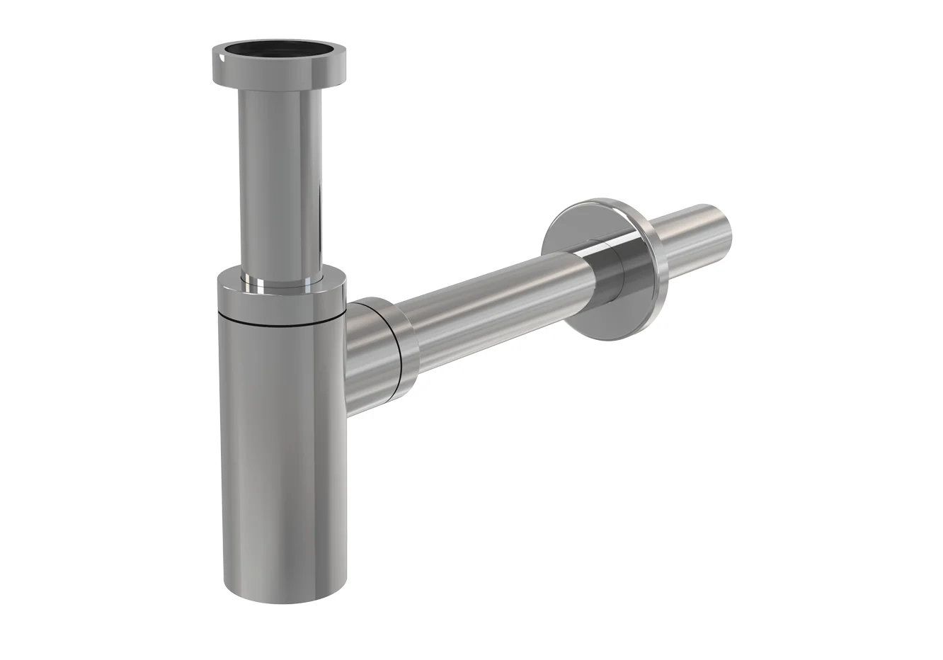 Сифон для умывальника хромированный под донный клапан DN32, цельнометаллический, круглый.